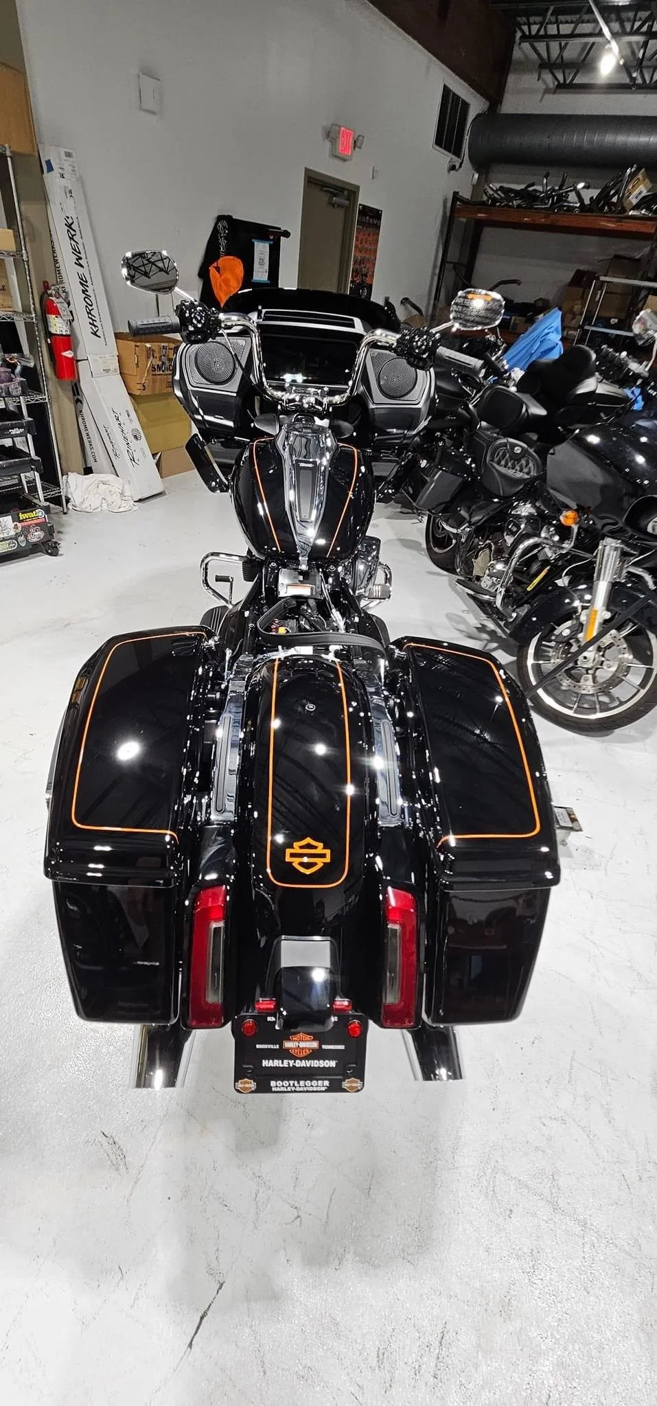 Hand painted factory style pinstriping and custom graphics help achieve a modern look.